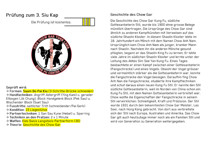 Auf unserem Kids Kung Fu Channel auf YouTube findest du interessante Kurzvideos für die Vorbereitung auf deine Level-Prüfung und allgemeine Informationen zu Chow Gar Kung Fu. (Klick auf den Link